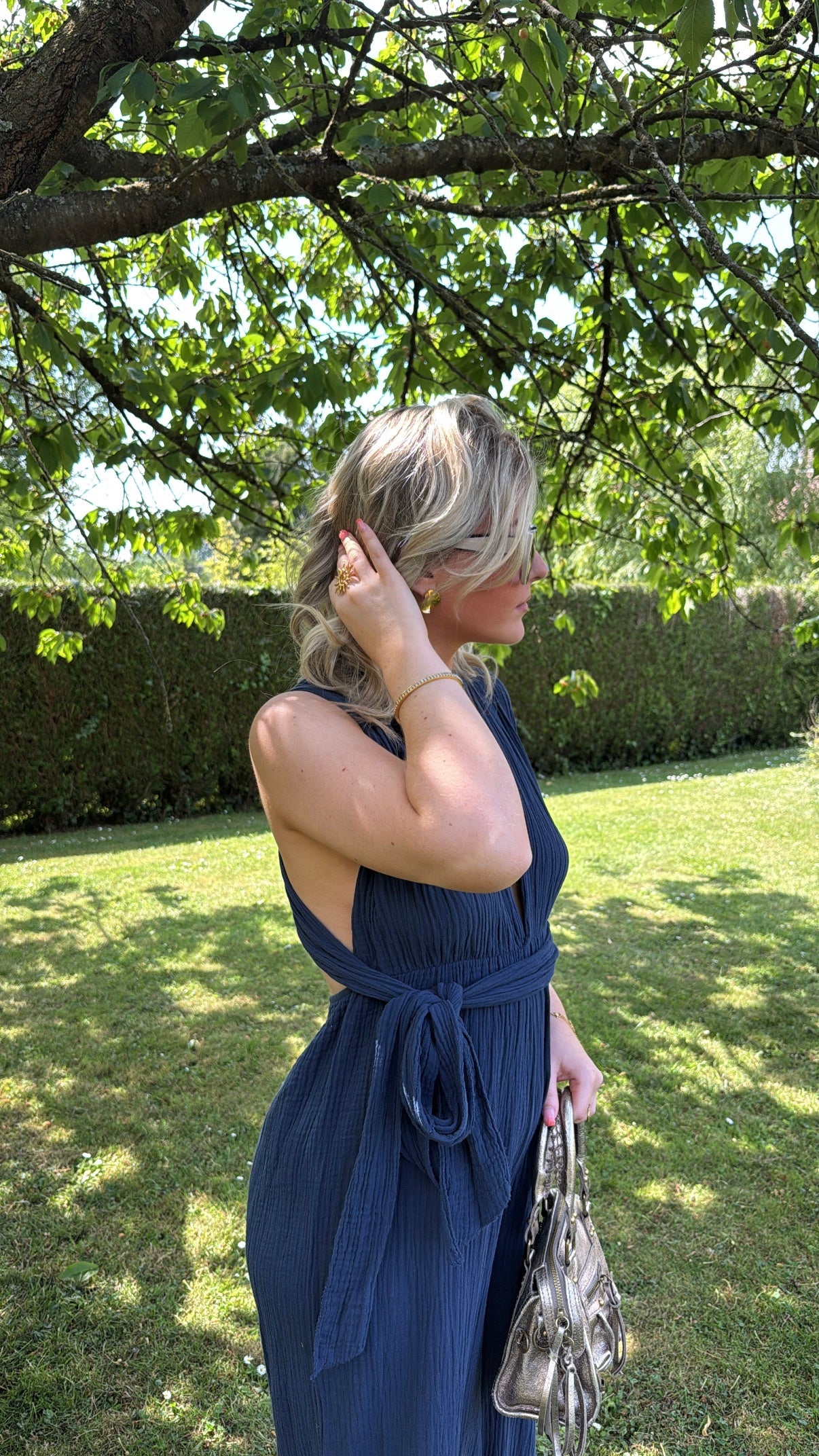 Craquez pour la liberté de style avec la combinaison ÉRYA, dotée de bretelles multi positions à nouer selon vos envies. En tour de cou, croisées dans le dos ou simplement nouées aux épaules... Changez de look en un clin d'oeil. Elle allie confort et élégance pour les journées chaudes. Sa coupe fluide et sa taille marquée créent une allure classe et féminine.